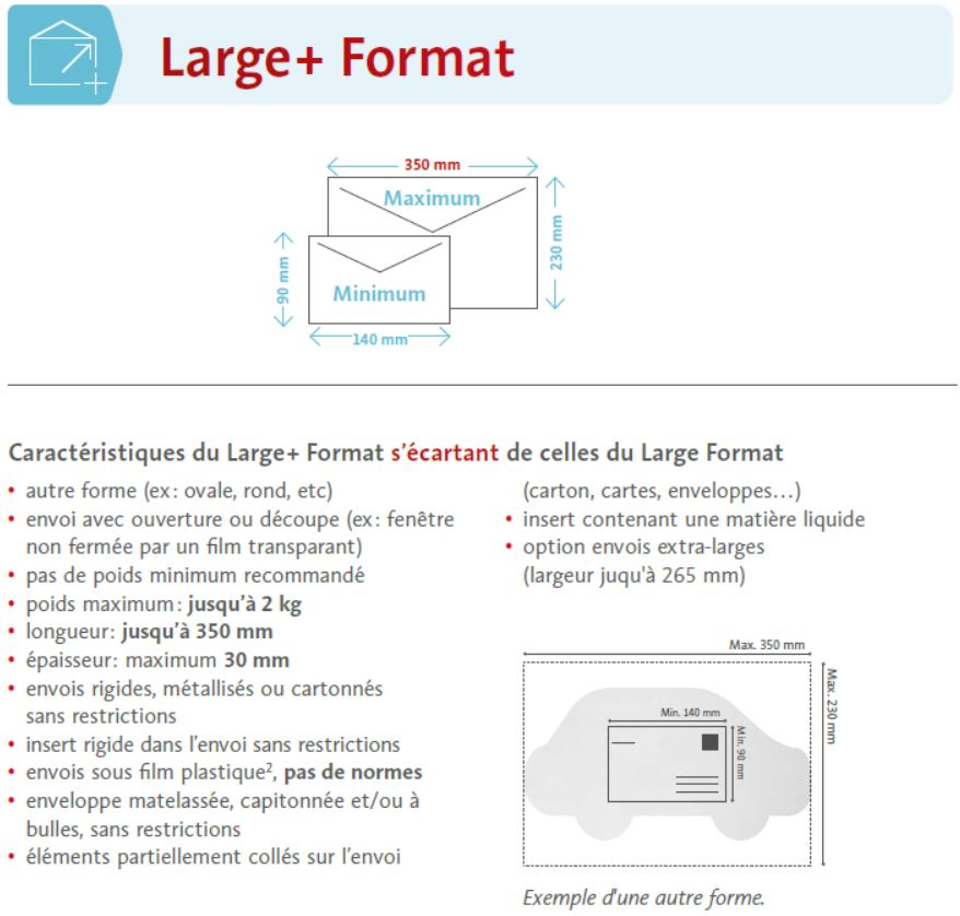Caractéristiques du Large+ Format s'écartant de celles du Large Format